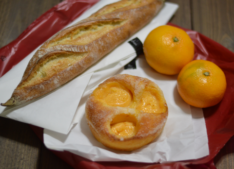 夕飯はジョエル・ロブションのクリームパンとプチバゲット、そしてみかん。